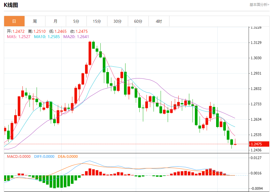 汇价高见1.2509,低见1.2465。上一交易日,汇价收于1.2472。