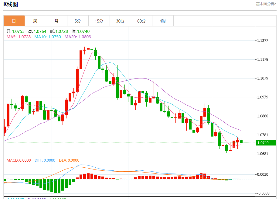 汇价高见1.0764,低见1.0728。上一交易日,汇价收于1.0754。