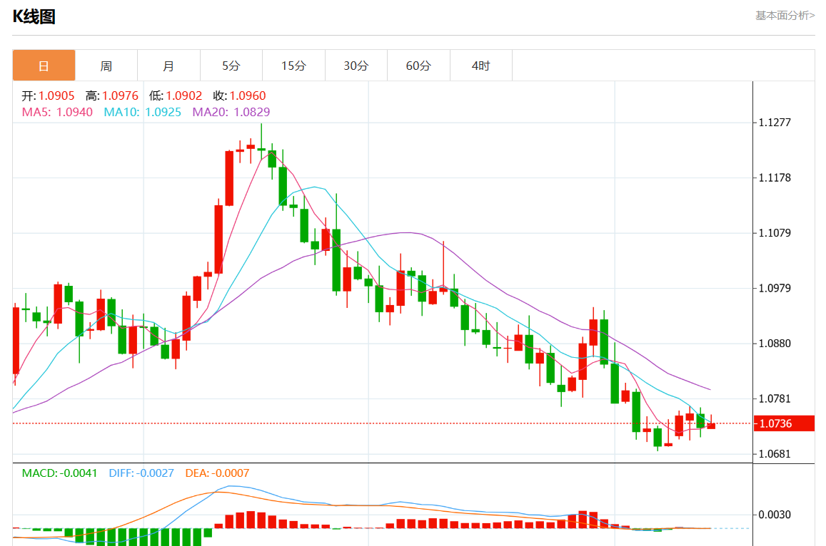 周四欧市盘中,欧元/美元最新报1.0740,日图涨0.10%.