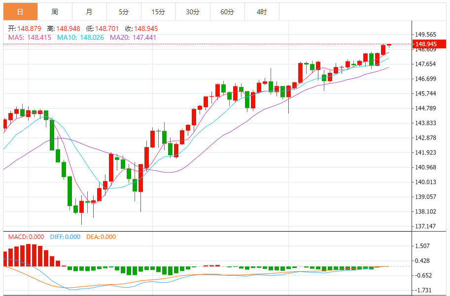 Öܶþ£¨9ÔÂ26ÈÕ£©£¬ÃÀÔª/ÈÕÔªÉÏÕÇ£¬Ôݱ¨148.955£¬ÕÇ·ù0.05%¡£