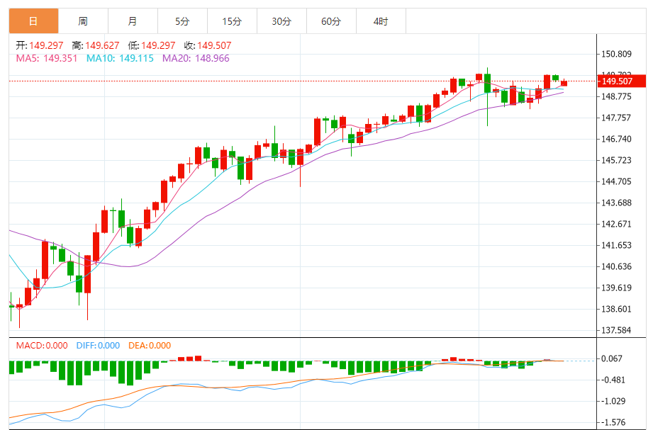 周一(10月16日),美元/日元下跌,暂报149.572,跌幅0.01%。