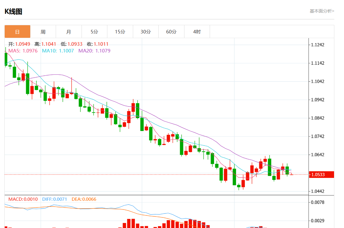 周四欧市盘中,欧元/美元最新报1.0544,日图涨0.08%.