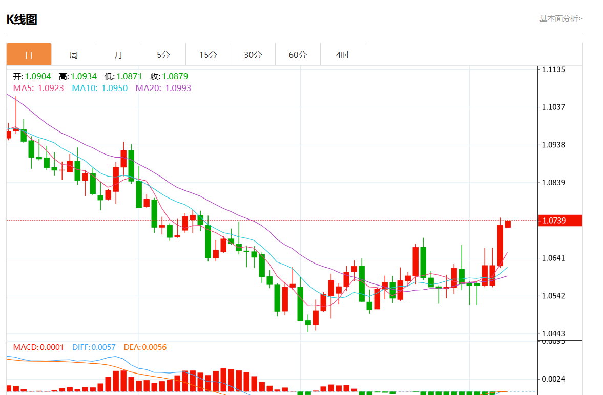 周一欧市盘中,欧元/美元最新报1.0736,日图涨0.08%.