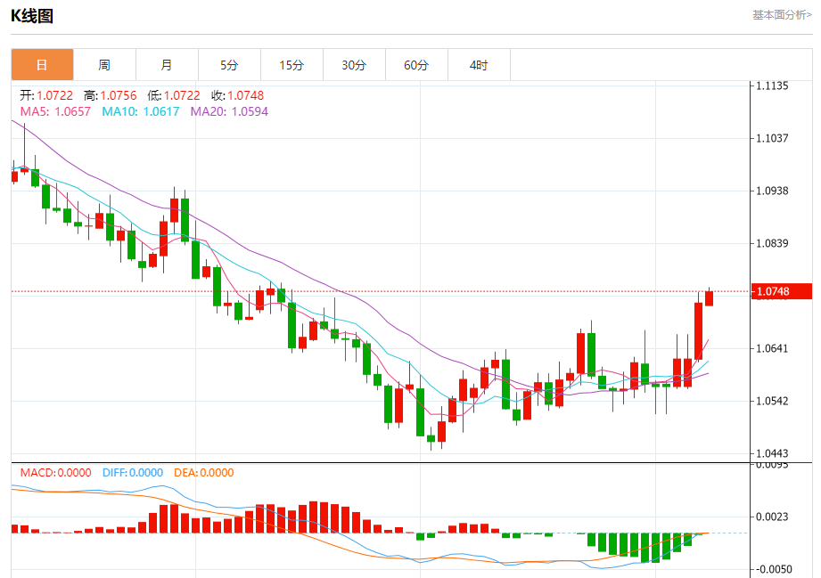 汇价高见1.0756,低见1.0722。上一交易日,汇价收于1.0727。