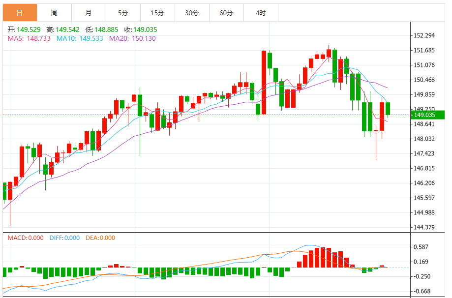 周四(11月23日),美元/日元下跌,暂报149.106,跌幅0.29%。