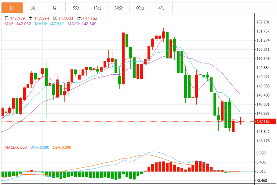 周三(12月6日),美元/日元上涨,暂报147.158,涨幅0.00%。