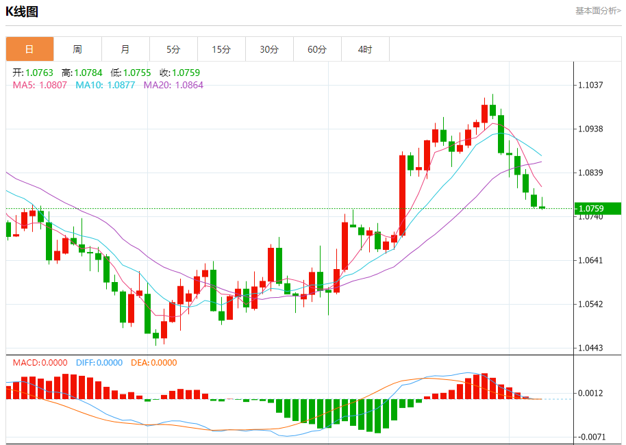 汇价高见1.0784,低见1.0755。上一交易日,汇价收于1.0764。
