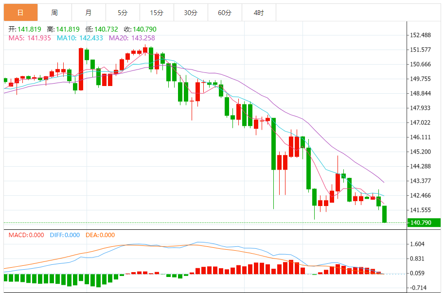 周四(12月28日),美元/日元下跌,暂报140.799,跌幅0.72%。