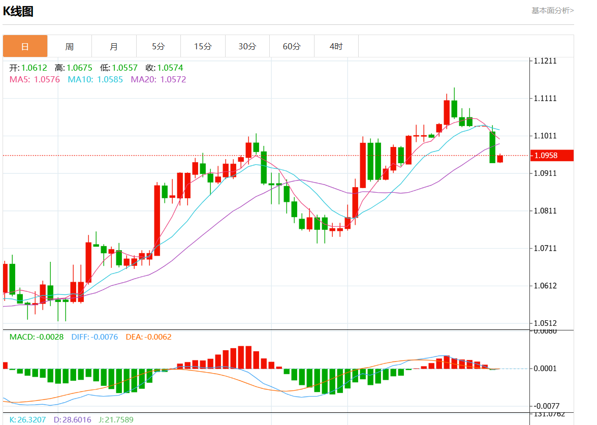 周三欧市盘中,欧元/美元最新报1.0958,日图涨0.17%.