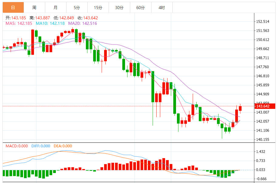 支撑位:143.29 143.43 143.61