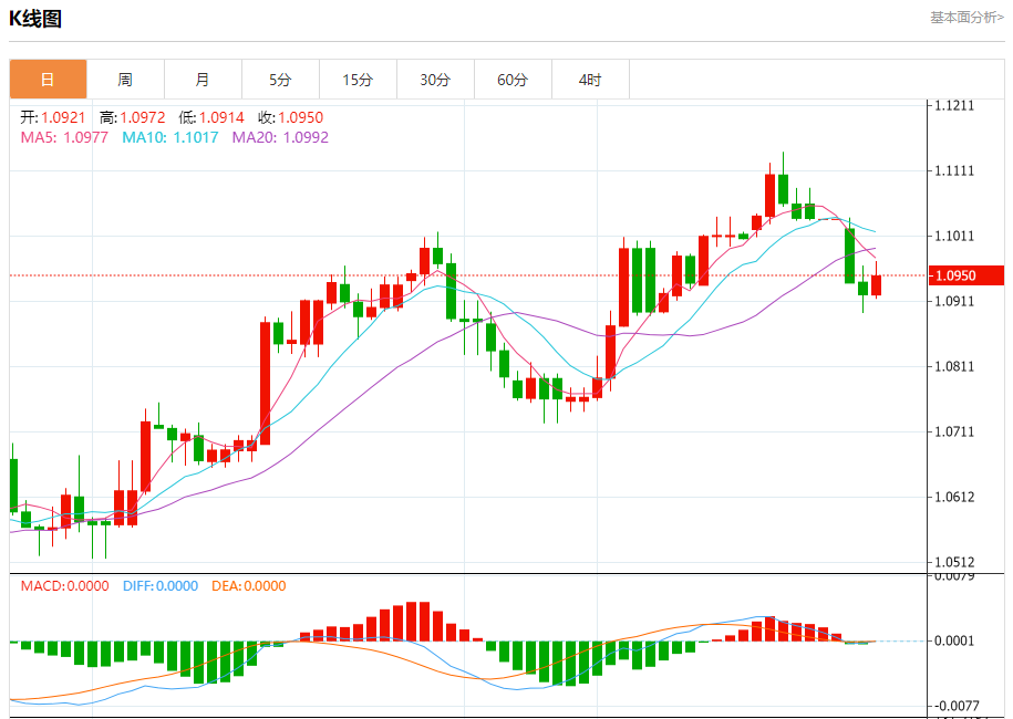汇价高见1.0972,低见1.0914。上一交易日,汇价收于1.0921。