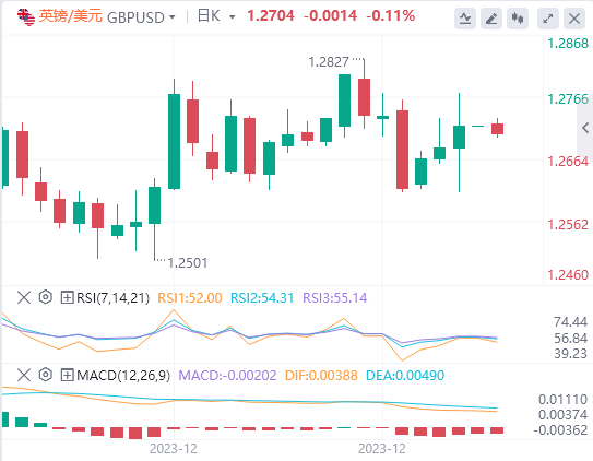 周五在1.2611-1.2770之间波动。我们可能会继续看到1.26-1.28以内的交易,继续几个交易日。