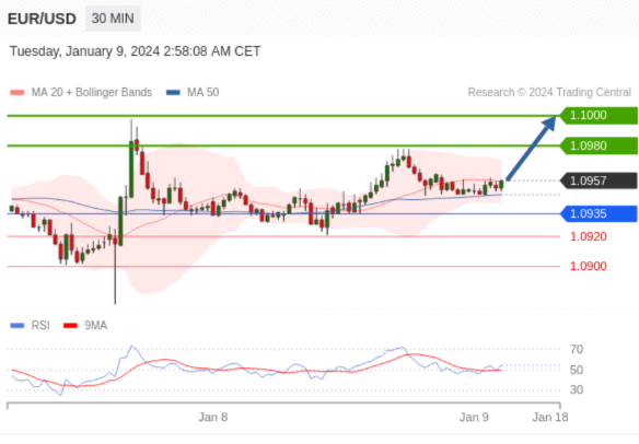 在 1.0935 之上,看涨,目标价位为 1.0980 ,然后为 1.1000 。
