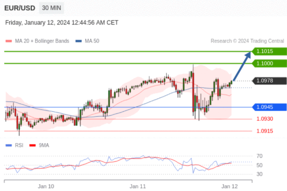 在 1.0945 之上,看涨,目标价位为 1.1000 ,然后为 1.1015 。