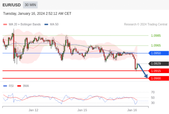在 1.0950 之下,看跌,目标价位为 1.0915 ,然后为 1.0900 。