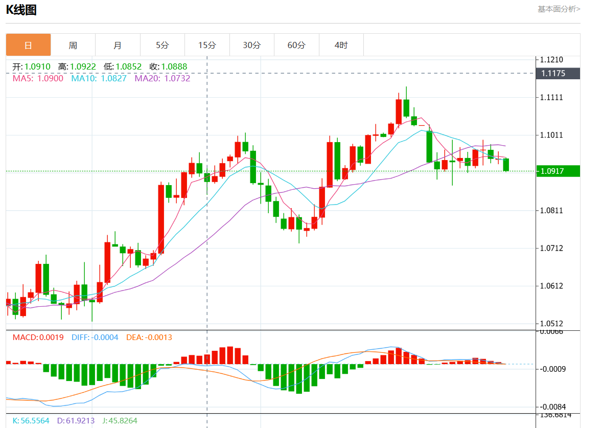 周二欧市盘中,欧元/美元最新报1.0917,日图跌0.28%.