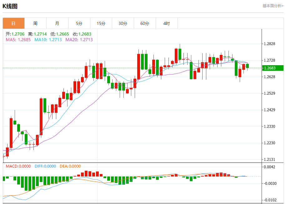 汇价高见1.2714,低见1.2665。上一交易日,汇价收于1.2705。