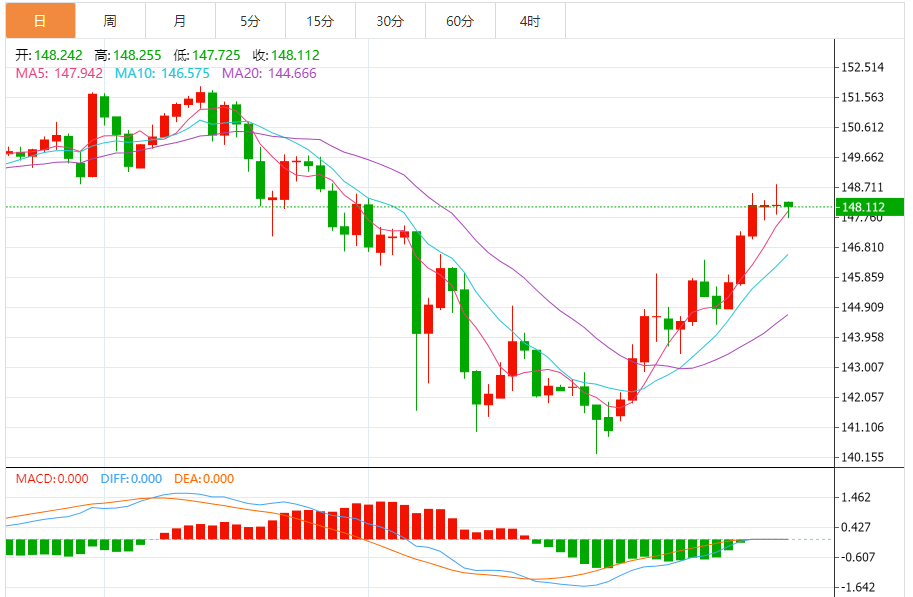 周一(1月22日),美元/日元下跌,暂报148.12,跌幅0.03%。