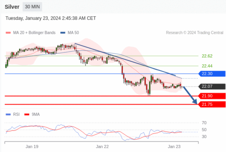 阻力位:22.62 22.44 22.30