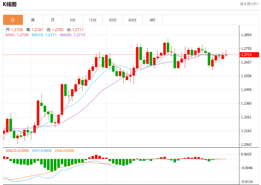 汇价高见1.2747,低见1.2700。上一交易日,汇价收于1.2708。