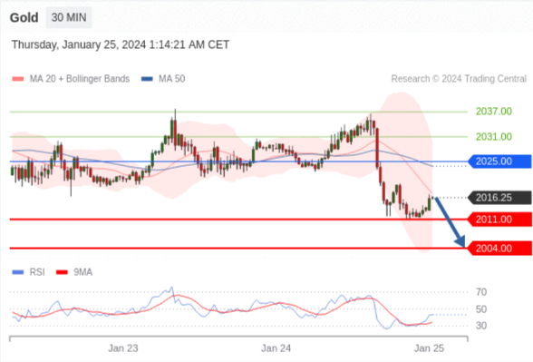 在 2025.00 之下,看跌,目标价位为 2011.00 ,然后为 2004.00 。