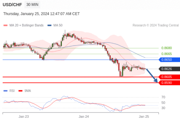 在 0.8650 之下,看跌,目标价位为 0.8605 ,然后为 0.8590 。