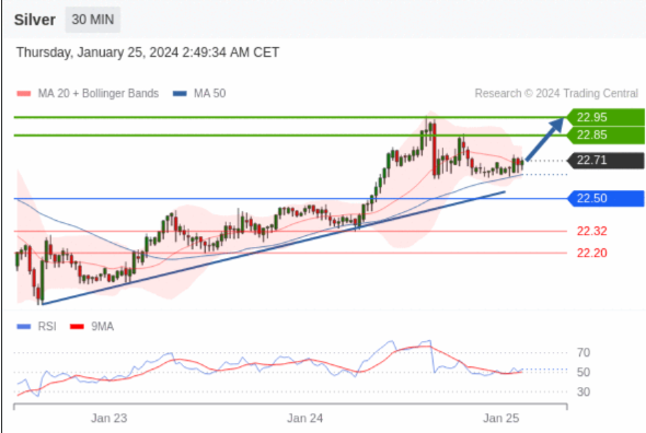 在 22.50 之上,看涨,目标价位为 22.85 ,然后为 22.95 。