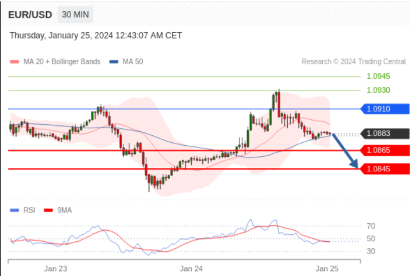 在 1.0910 之下,看跌,目标价位为 1.0865 ,然后为 1.0845 。