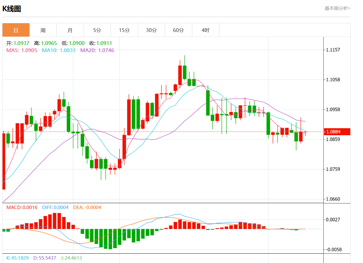周四欧市盘中,欧元/美元最新报1.0885,日图涨0.01%.