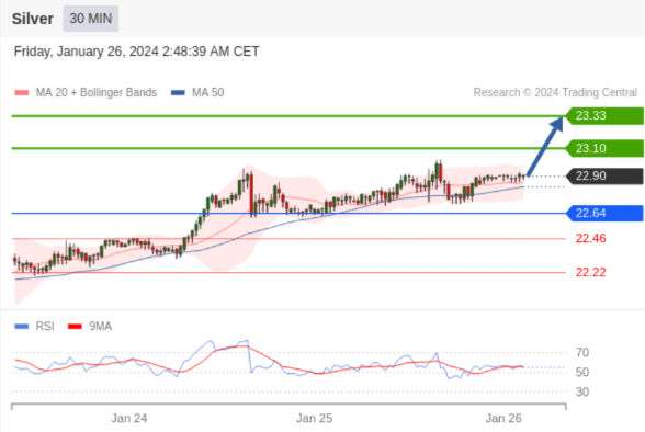 在 22.64 之上,看涨,目标价位为 23.10 ,然后为 23.33 。