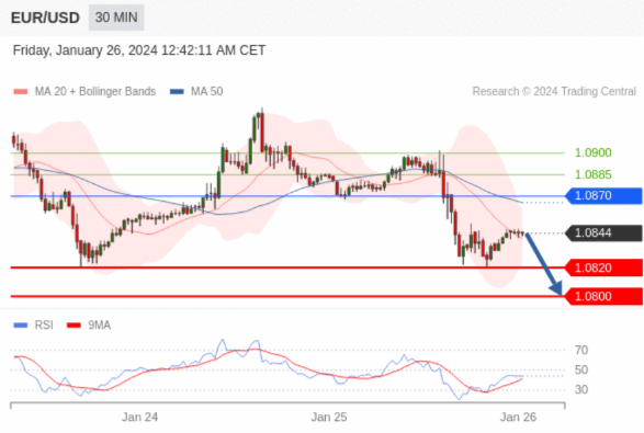 在 1.0870 之下,看跌,目标价位为 1.0820 ,然后为 1.0800 。