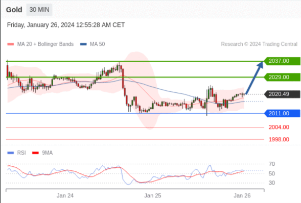 在 2011.00 之上,看涨,目标价位为 2029.00 ,然后为 2037.00 。