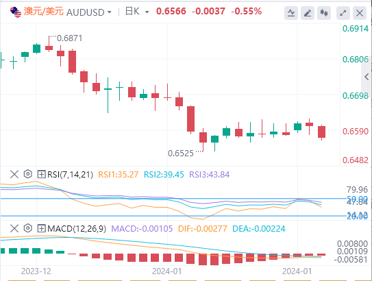 澳元/美元从昨日的0.6624大幅下跌。只要低于0.6650,那么澳元/美元可能很快会测试0.65或更低水平。