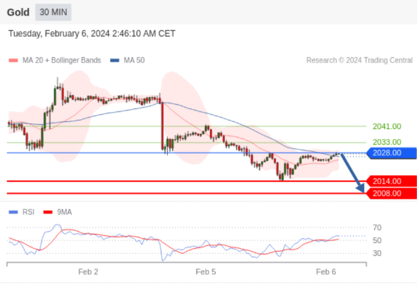 在 2028.00 之下,看跌,目标价位为 2014.00 ,然后为 2008.00 。