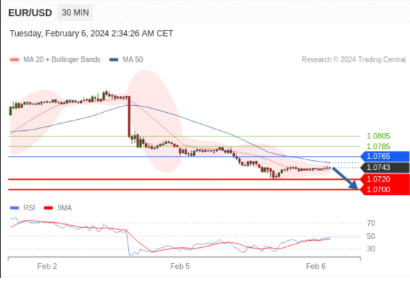 在 1.0765 之下,看跌,目标价位为 1.0720 ,然后为 1.0700 。