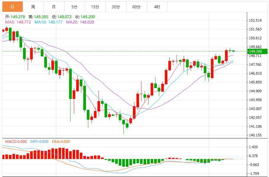 周一(2月12日),美元/日元下跌,暂报149.205,跌幅0.04%。