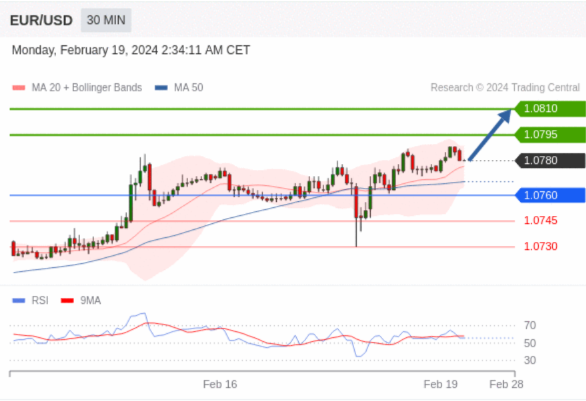 在 1.0760 之上,看涨,目标价位为 1.0795 ,然后为 1.0810 。