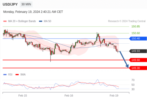 在 150.40 之下,看跌,目标价位为 149.60 ,然后为 149.30 。