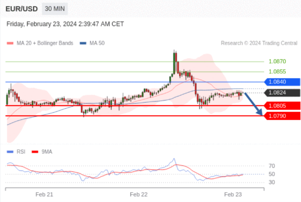 在 1.0840 之下,看跌,目标价位为 1.0805 ,然后为 1.0790 。