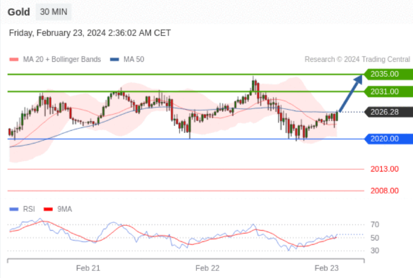 在 2020.00 之上,看涨,目标价位为 2031.00 ,然后为 2035.00 。