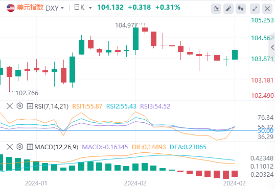 分析师指出,美联储已表现出对仓促降息的谨慎态度,这导致3月降息的可能性降低,而5月的可能性已降至20%左右。就目前而言,最有可能的情况是美联储将在6月开始降息,这似乎为美元提供支撑,美元指数仍显示出一定程度的看涨弹性。