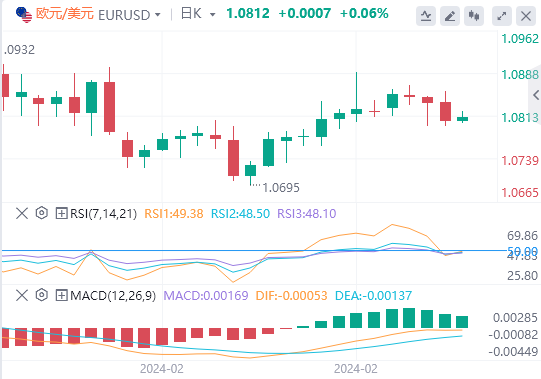 欧元/美元周四再次测试1.0796的低点,随后有所回升。短期支撑位见于1.0775附近,近期上行空间可能限于1.09-1.0950。
