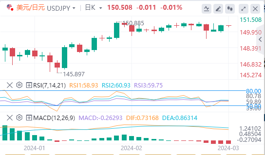 美元/日元在近期区间149-151内上涨,这一区间可能会持续几个交易日。