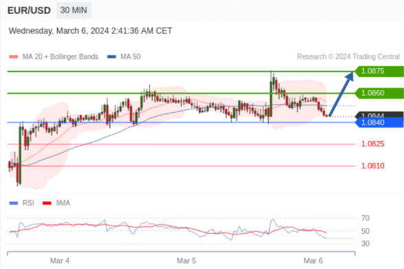 在 1.0840 之上,看涨,目标价位为 1.0875 ,然后为 1.0890 。