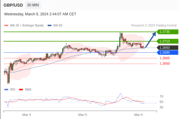 在 1.2680 之上,看涨,目标价位为 1.2710 ,然后为 1.2735 。
