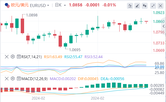 欧元/美元在阻力位1.085下方徘徊,需要突破该阻力位,才能进一步升向1.09;否则,短期内该货币对有可能再次跌向1.075。需要观察在1.0850附近的价格走势。