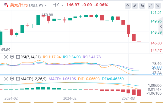 美元/日元在过去几个交易日因美元走弱而大幅下跌。美元/日元已经测试146.47,如果上述水平,短期内可能分别反弹向148。
