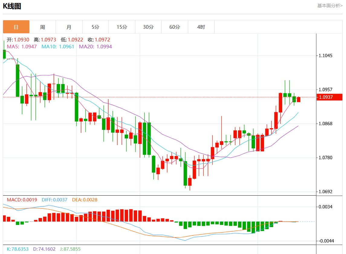 周二欧市盘中,欧元/美元最新报1.0938,日图涨0.12%.