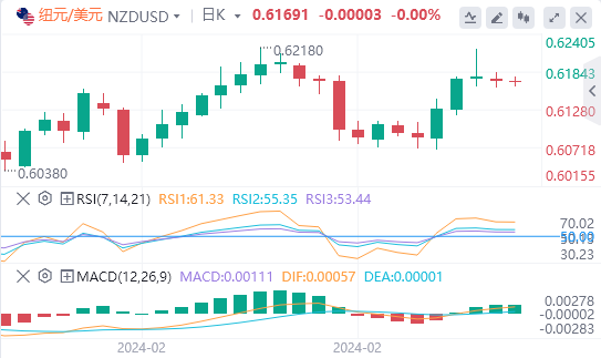 纽元/美元价格显示出平静的负面交易,逐渐接近关键支撑位0.6140,价格需要在此水平上方盘整以保持看涨趋势情景活跃,最初目标是测试0.6228。