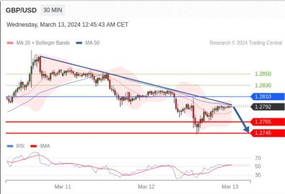 在 1.2810 之下,看跌,目标价位为 1.2765 ,然后为 1.2745 。